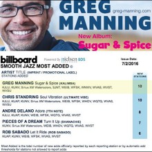 Greg Manning’s first single “Sugar & Spice” from his upcoming CD entitled ‘Sugar & Spice’ is #1 on Billboard’s Smooth Jazz Most Added chart!