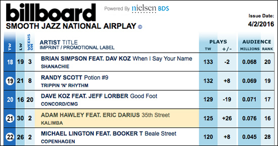 Billboard Smooth Jazz Chart: #1 Most Added (9 adds)